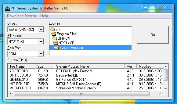 На SYSMAC WAY ,Settings,Driver се настройва COM port.
